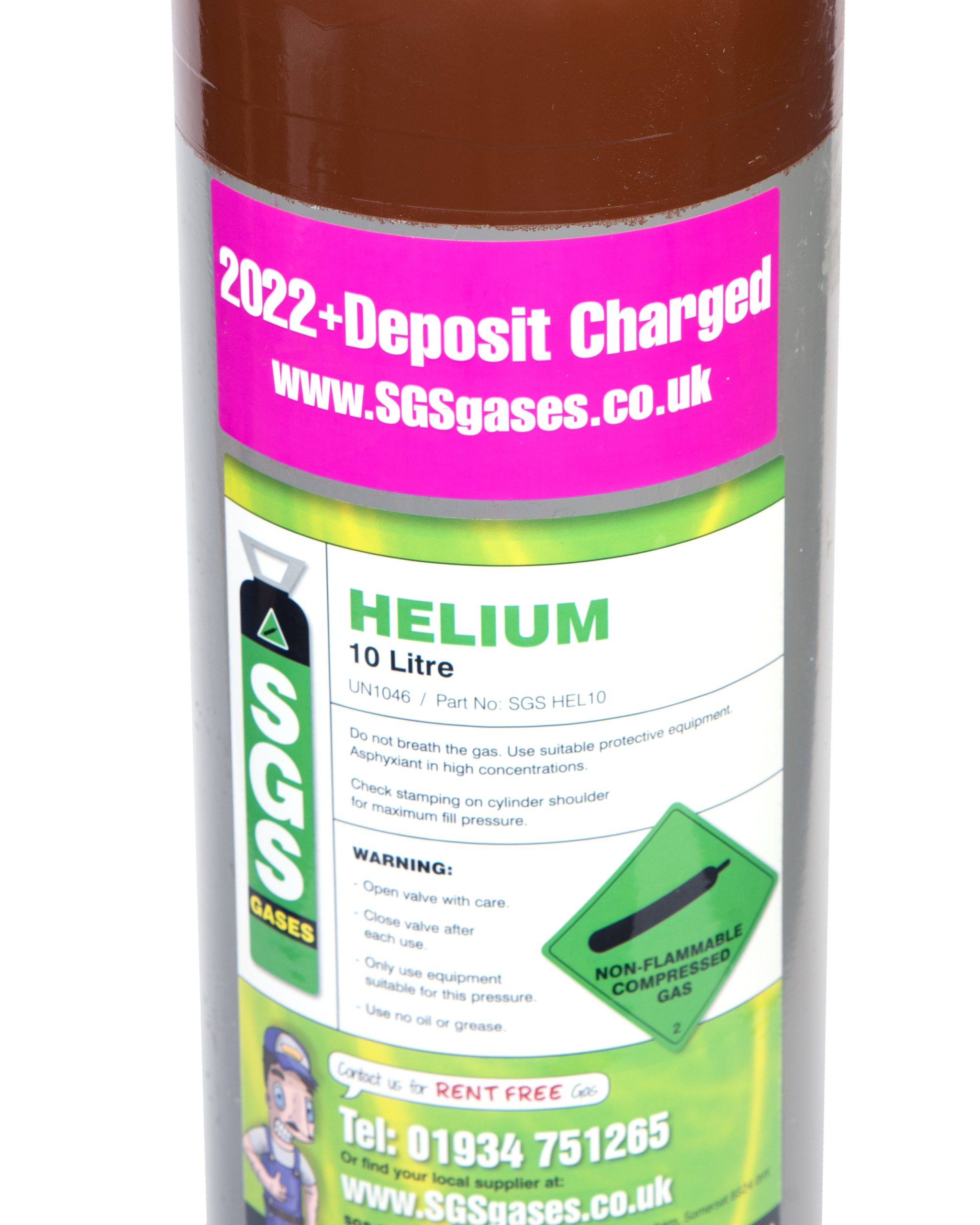 We provide Helium in a 10L Cylinder size filled to 200 Bar Pressure. – You may be interested in the SGS Balloon Adaptor seen HERE